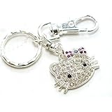 Pink Purple Bow Kitty Key Chain Purse Charm with TONS Crystals